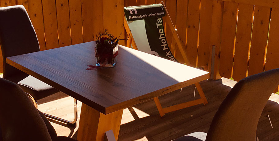 25 m2 BALKON mit Tisch, Sitz- und Liegemöbel